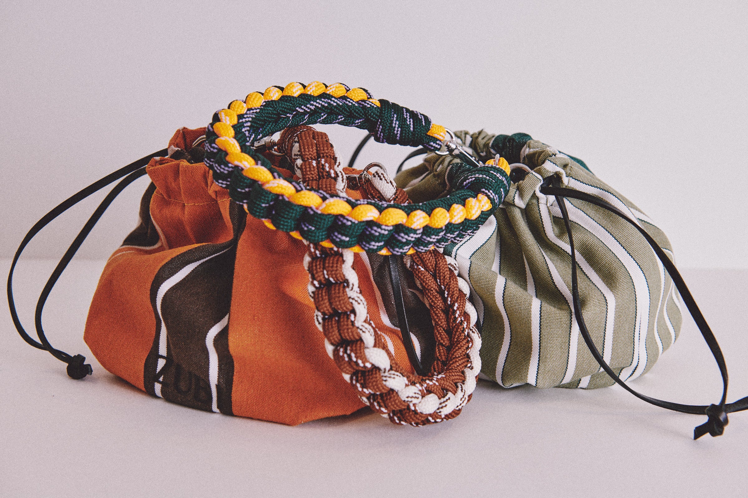 Cada estampado recoge algo de esos lugares: flores que podrían crecer junto al camino, arenas suaves, rocas erosionadas, horizontes limpios. Bolsos pensados para llevar lo justo, para acompañar el día. Algodón, cordina, colores que no compiten con lo que pasa alrededor.