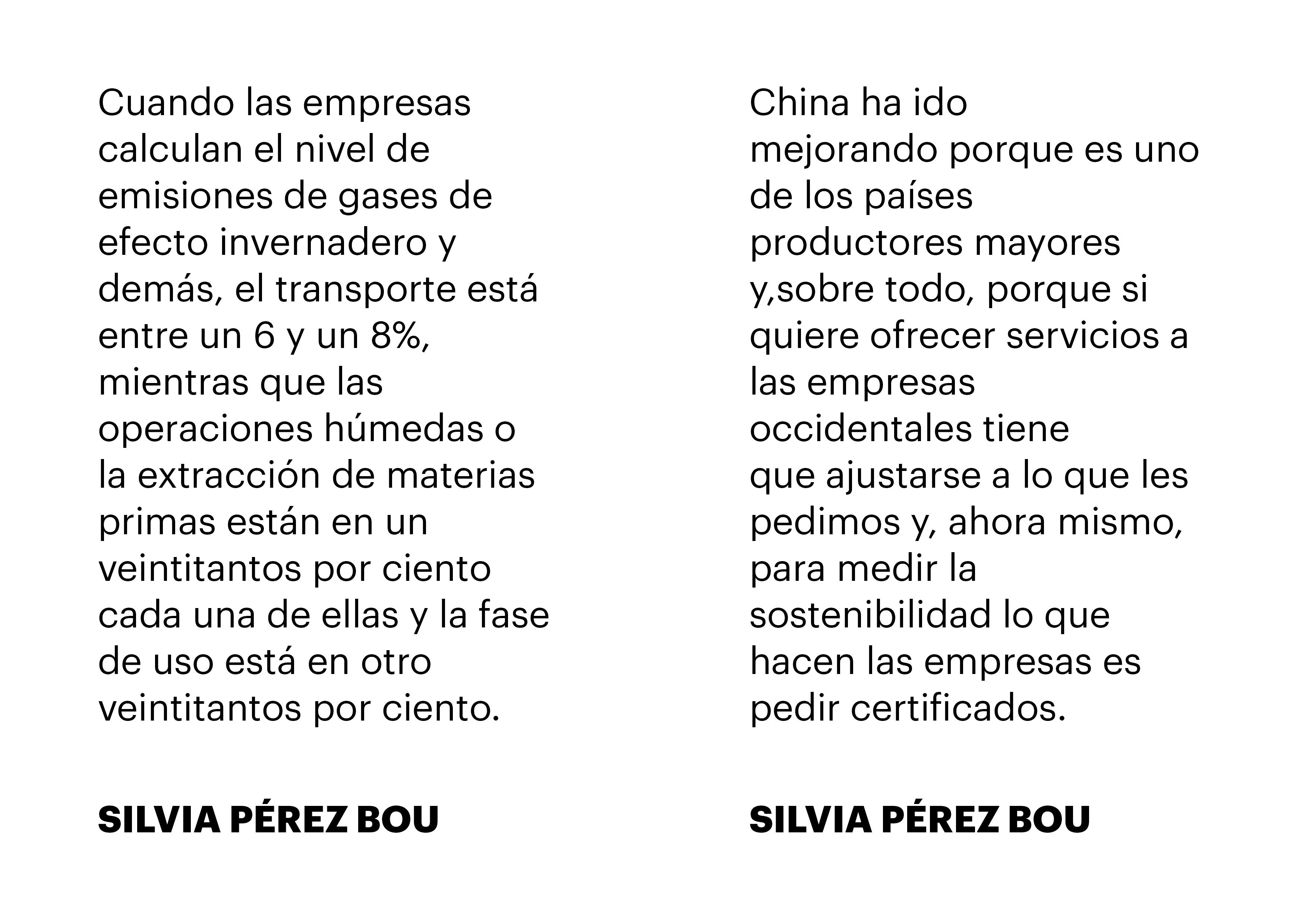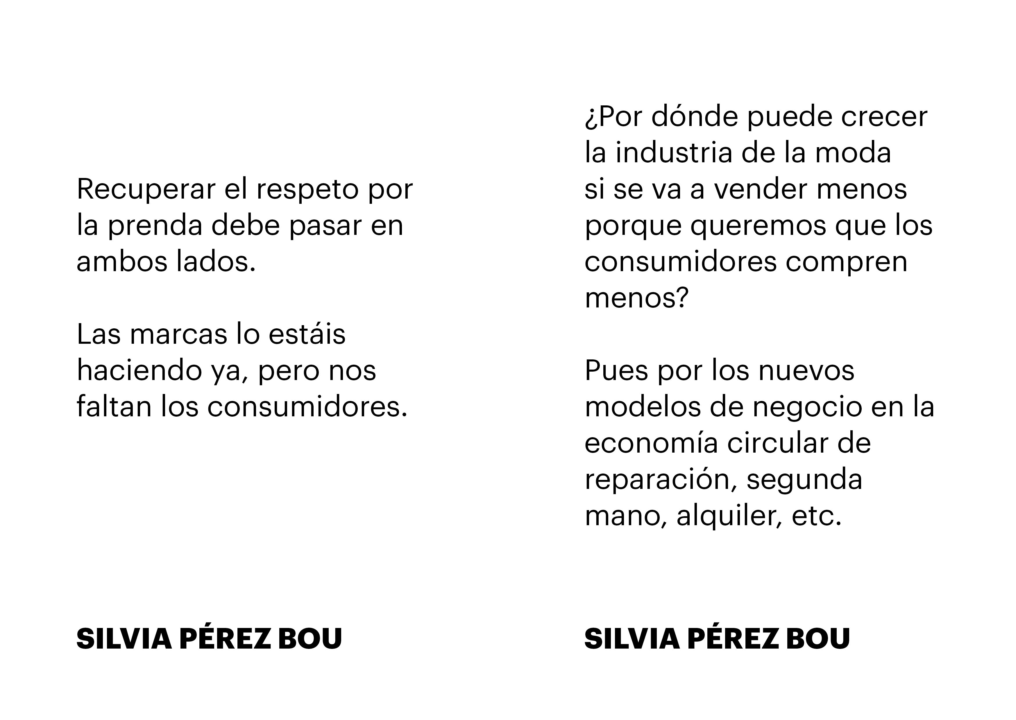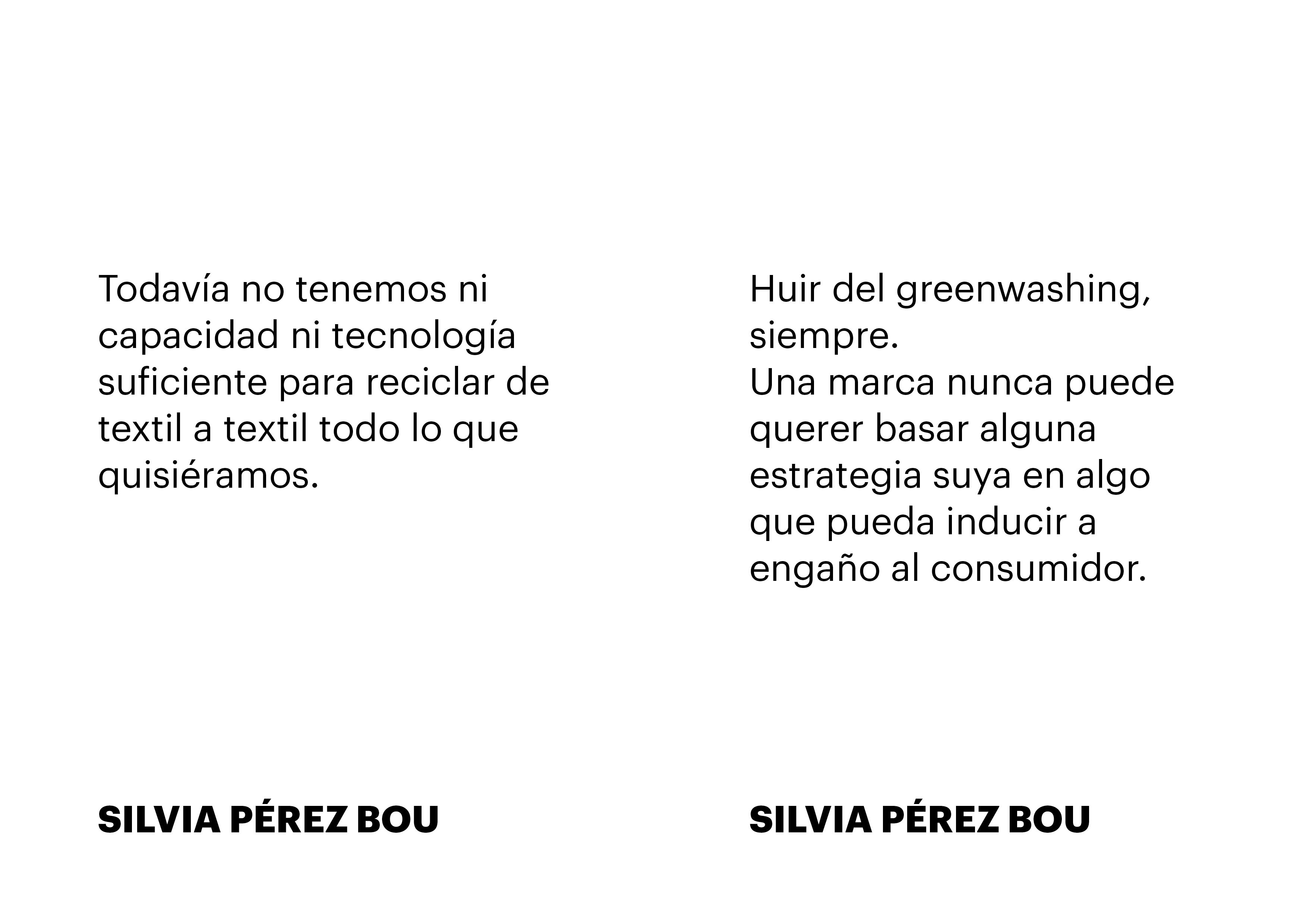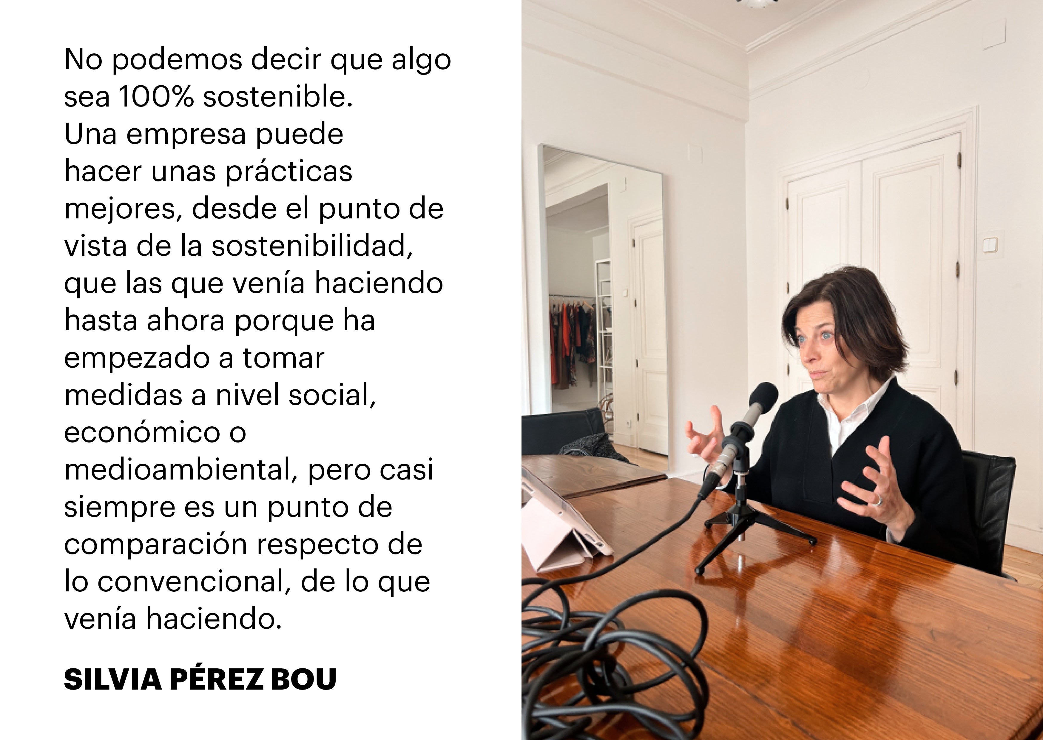 De nuestra charla con Silvia Pérez Bou, profesora en ISEM Fashion Business School y en la Escuela de Arquitectura de la Universidad de Navarra, nos quedamos con algo que vamos a llevar a rajatabla cuando perdamos un poco el foco: no es tan importante luchar por conseguir objetivos que a día de hoy no están en nuestras manos, como contar con transparencia lo que sí hacemos para mejorar nuestros procesos de producción y nos hace sentir orgullosas.