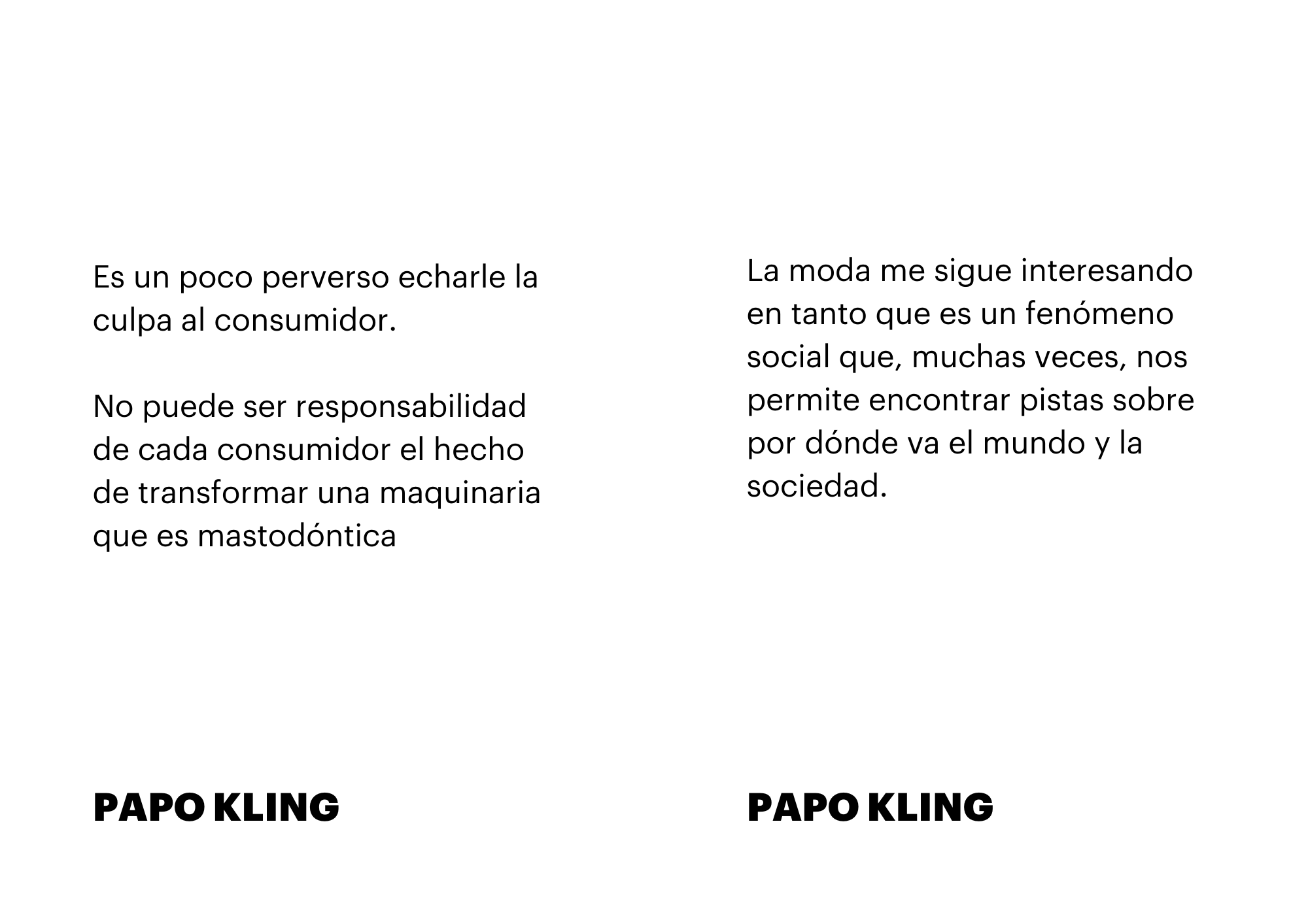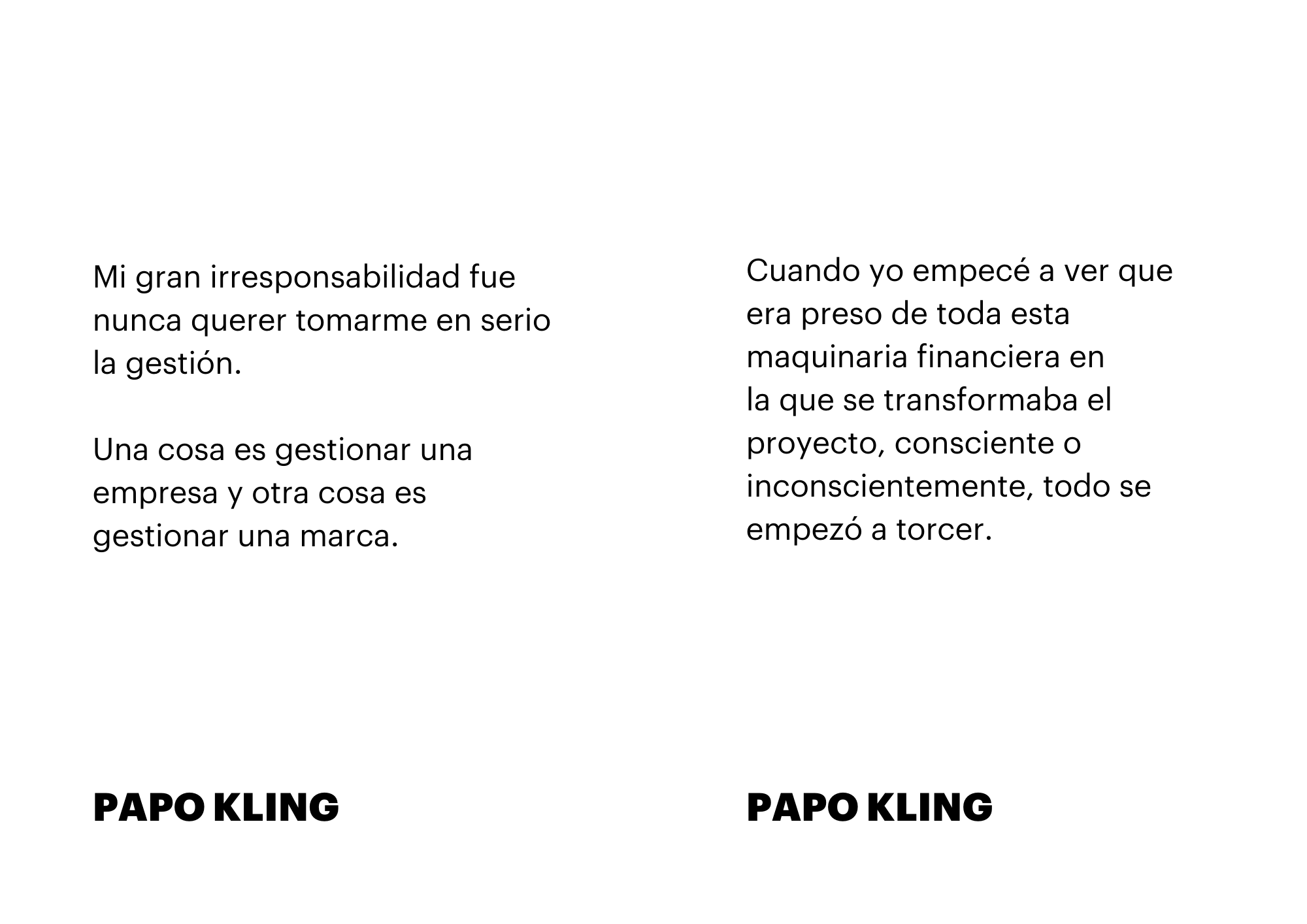 Cuando una de nuestras editoriales favoritas, Círculo de Tiza, nos propuso leer Fractura Expuesta de Papo Kling no pensábamos que fuéramos a devorar el libro en cuestión de horas. Una historia empresarial real, vinculada a la moda, de éxito y declive a la vez. Nosotras mismas en momentos victoriosos e ilusionantes frente a otros de crisis e incertidumbres. Certezas y contradicciones, talento creativo y responsabilidad financiera. Un cruce de caminos que puede llevarte muy lejos o querer saltar del tren en pleno movimiento.