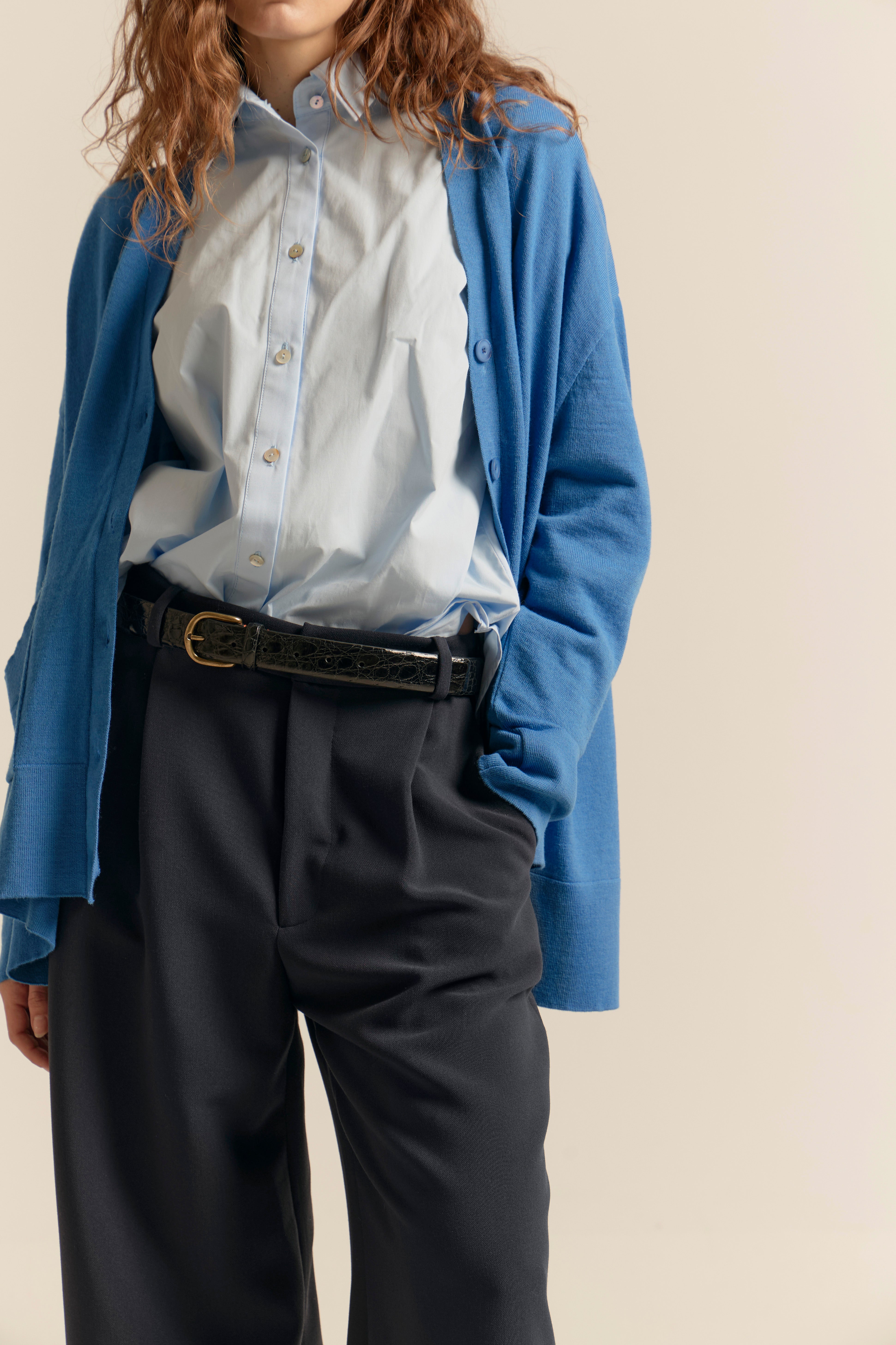 Nuestro jersey Eugenia es uno de esos clásicos que siempre vuelven. Con escote pico, manga ranglán con ligero volumen y puños más ajustados, su diseño aporta estructura sin perder ligereza. Incorpora aberturas laterales y un patrón equilibrado, con delantero y espalda casi iguales, que lo hace cómodo y versátil para llevar tanto por dentro como por fuera del pantalón. Un básico sofisticado y atemporal, perfecto también para las noches de verano.