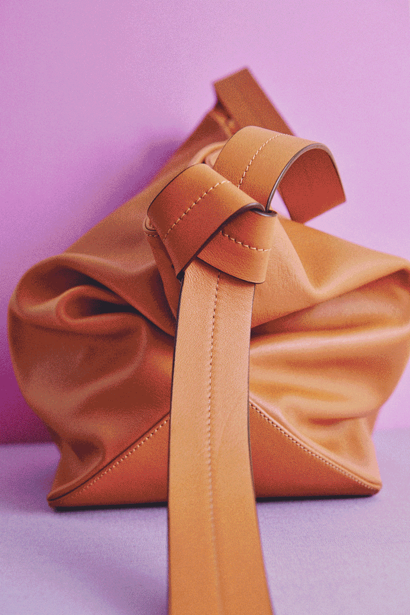 Es nuestro primer bolso diseñado enteramente alrededor de un solo detalle: un nudo de piel atado a mano, pieza a pieza, en un taller de España. No es un adorno. Es la estructura. Es lo que le da nombre, silueta y carácter. Cada nudo es ligeramente distinto del anterior porque cada uno se hace con las manos, y las manos no repiten.