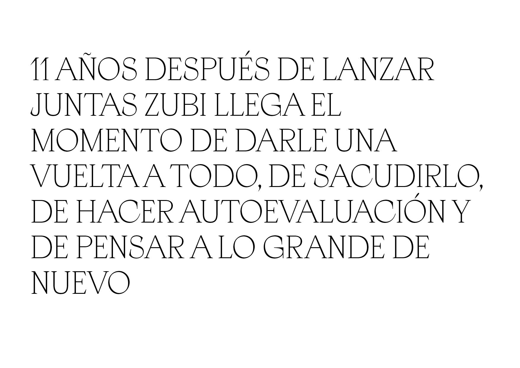 An iconic Pouch, a collection of bags, accessories and RTW, 4 physical points of sale, a network of more than 50 multi-brand stores and more than 70K followers on social networks later lead Zubi to a complete rethinking of its brand image and to plant it looking to the future. That's what it takes to mature, that your body and your projects ask for changes, and we're on our way.