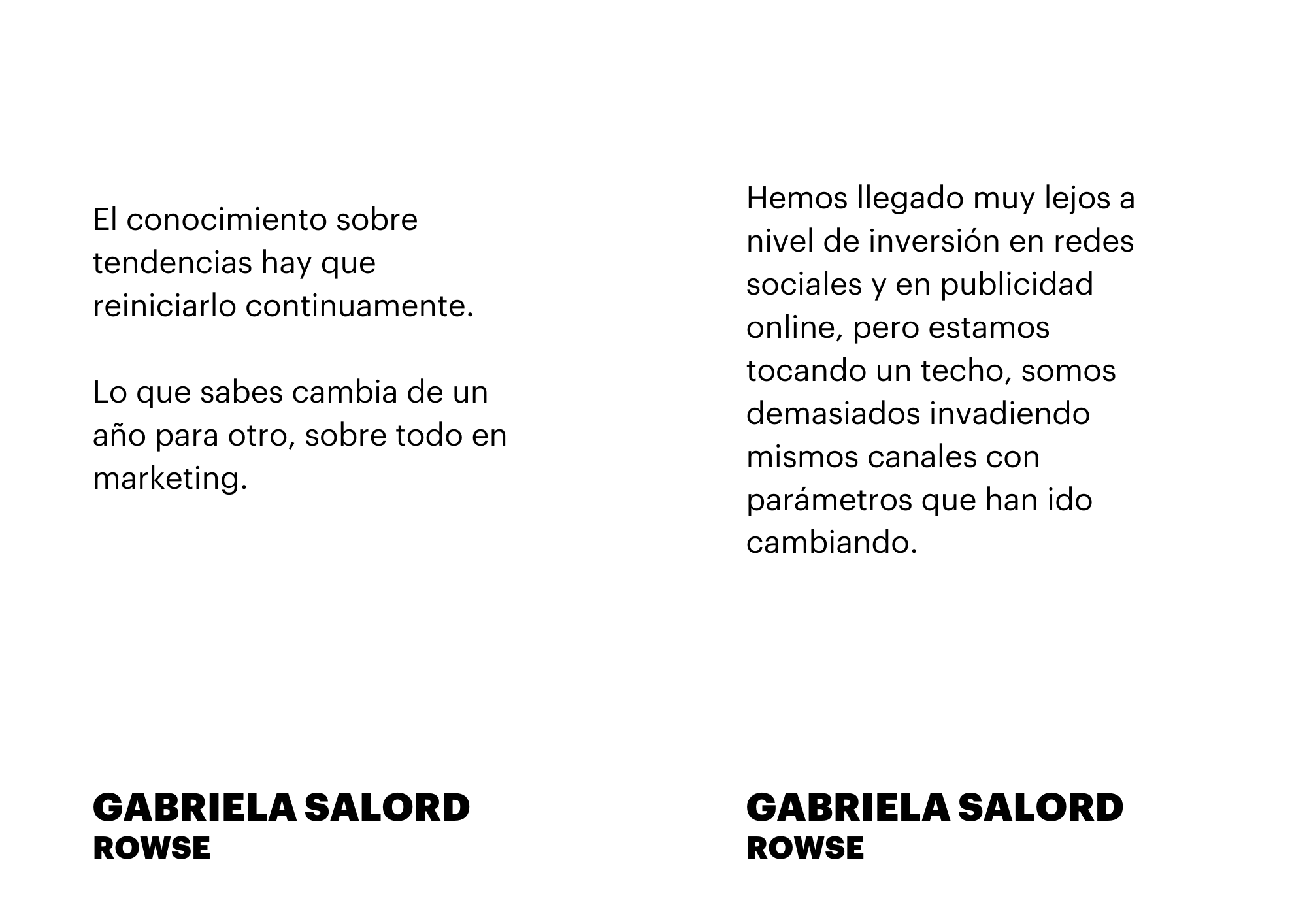 “Reduce your beauty routine to its quintessence.” This is the mantra of ROWSE and one of the reasons why Gabriela Salord , our guest today and co-founder with Nuria Val of a cosmetics firm that is on everyone’s lips, put her professional career in the mass consumption sector on hold to focus on her own project.