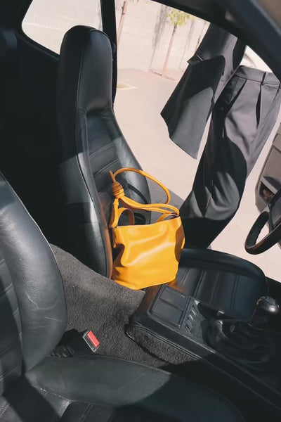 El Cubo M es un bolso de piel sin forro, todoterreno e inspirado en los nudos marineros. Puedes llevarlo colgado del hombro o cruzado en bandolera gracias a su asa ajustable con nudo de piel corredizo. Cuenta con una base circular, cierre con dos imanes ocultos y un bolsillo interior de piel.