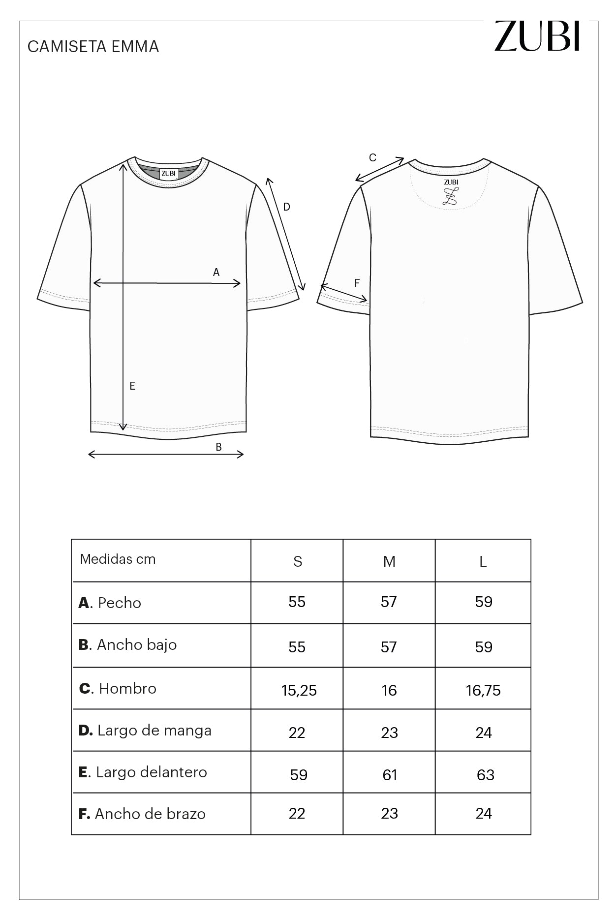 Tiene escote redondo con cuello de canalé, que en la parte superior del centro espalda, lleva un bordado de ZUBI + isotipo que se tinta al mismo tono de la prenda.