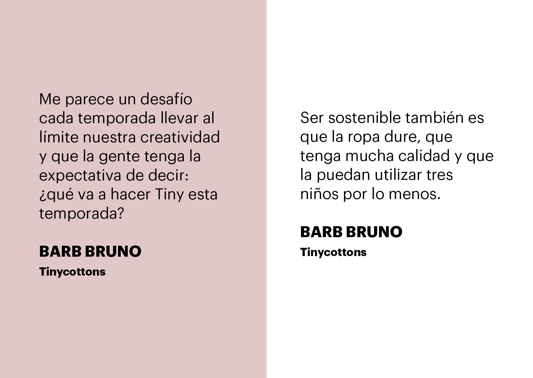 Desde que en 2012 lanzó junto a su marido Tinycottons, éxitos y nuevos proyectos no han parado de sucederse. Y no es de extrañar. Barb no es sólo fundadora de Tinycottons, ella es la chispa, la ilusión, las ganas inagotables y la fuerza arrolladora que ha conseguido darle un giro de tuerca a la categoría Kids y posicionar su propuesta a nivel worldwide.