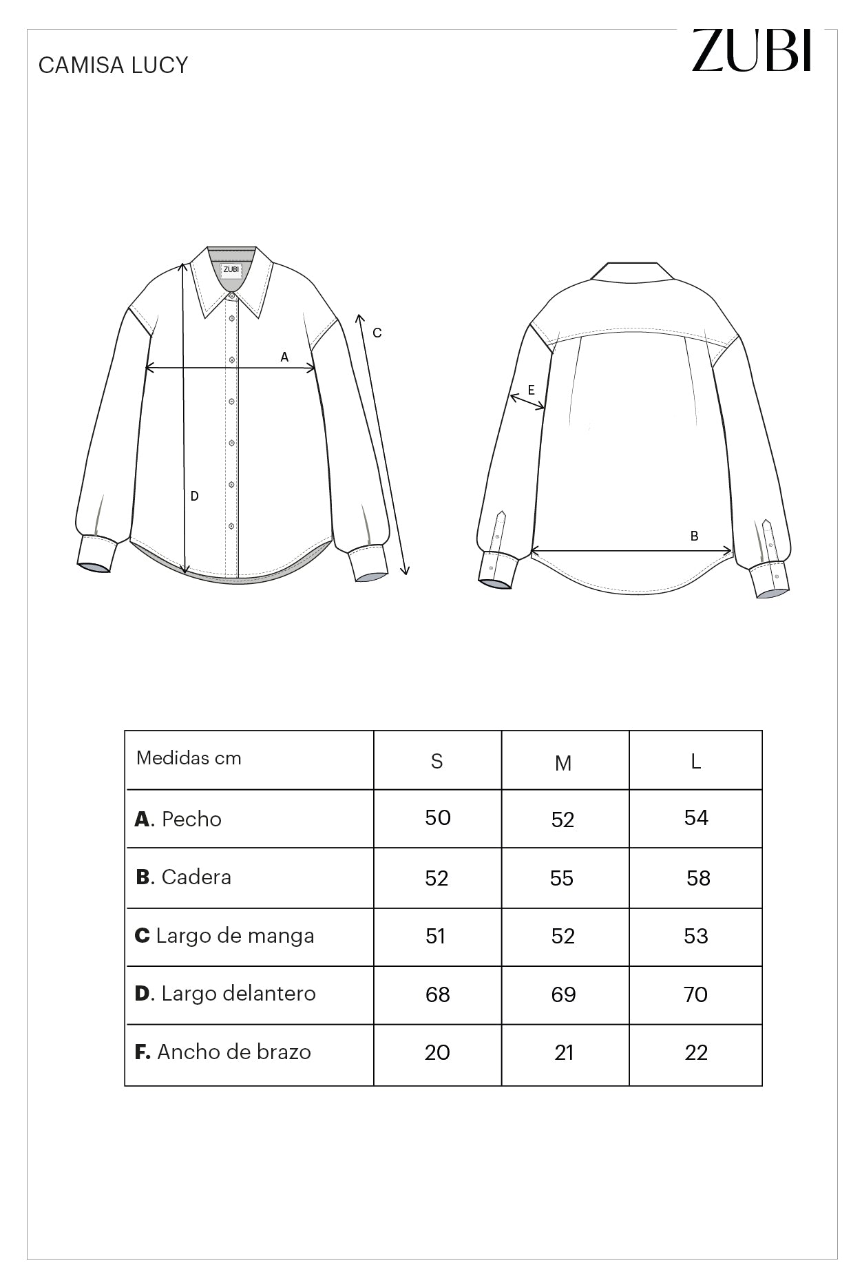 La camisa Lucy, es una camisa oversized de hombro caído y con una manga recta. Tiene un cuello camisero con aire retro, al igual que sus botones snap con acabado nácar y costuras a contraste como el denim clásico. Bajo de prenda redondeado y ligeramente asimétrico con la parte trasera mas larga que la delantera.