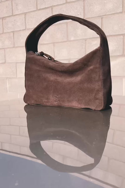 Bolso de hombro con base rectangular, de tamaño medio y diseño versátil. Joan está fabricado en piel de serraje de vacuno. El asa nace de forma continua desde los laterales del bolso, dejando en forma de “U” la parte central. Cierre superior con cremallera metálica, forro de algodón, bolsillo interior y asa amplia para llevarlo cómodamente incluso con abrigos voluminosos.