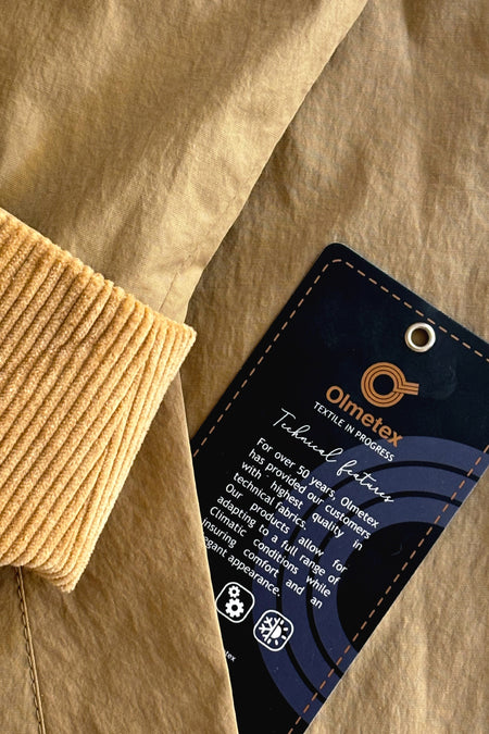 La gabardina Vera está confeccionada con tejido del telar italiano Olmetex, que produce tejidos técnicos de alta gama. Este textil tiene un acabado que la hace totalmente impermeable y transpirable.
