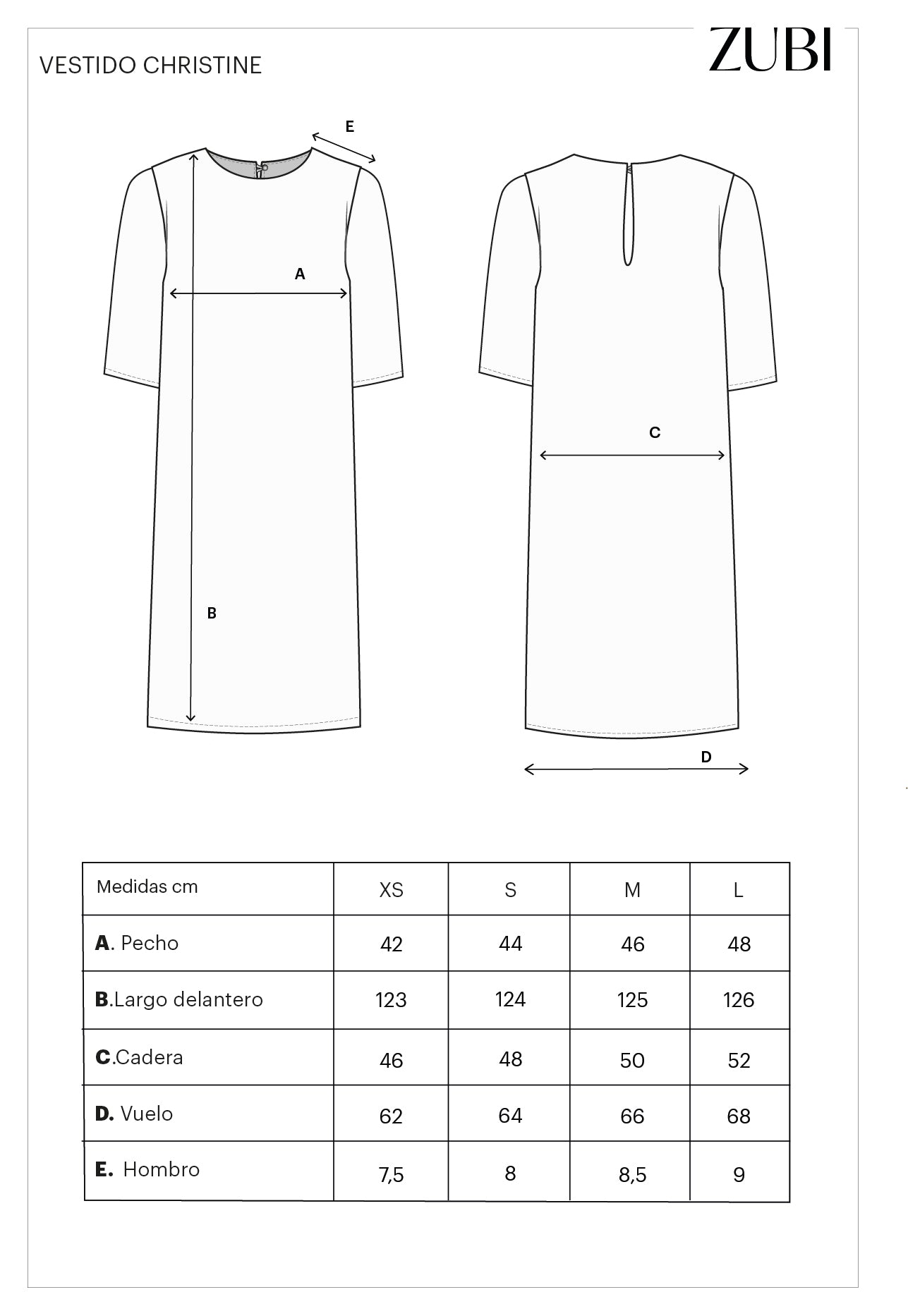 El vestido Christine es un diseño recto de largo midi y manga al codo. Incorpora una abertura en la parte trasera que facilita el movimiento y aporta comodidad al caminar. Se cierra en el centro de la espalda mediante una lágrima con botón interior, manteniendo un acabado limpio y cuidado.