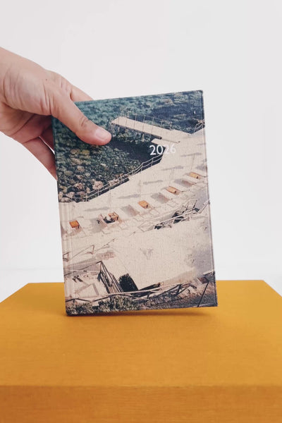 Cada agenda es única: el paisaje y el color de la impresión varían ligeramente en cada ejemplar, convirtiéndolas en pequeñas obras irrepetibles.