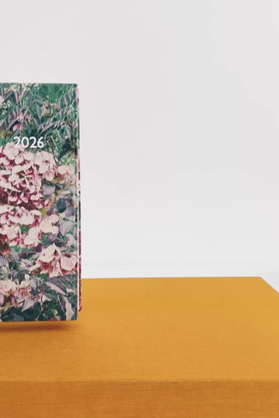 Cada agenda es única: el paisaje y el color de la impresión varían ligeramente en cada ejemplar, convirtiéndolas en pequeñas obras irrepetibles.